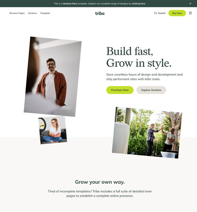 Select from over 120 purpose-built sections and build unique pages in moments.